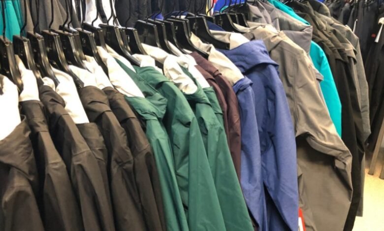 columbia jackets hanging on rack