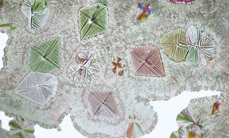 Microscopic view of paracetamol crystals