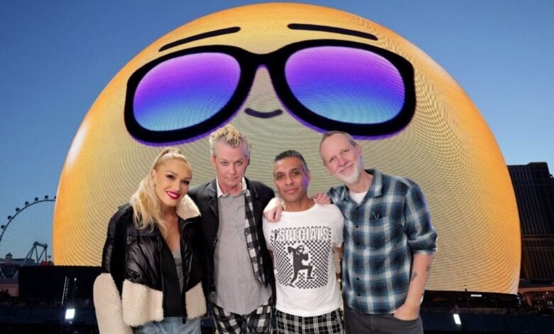 No Doubt members Gwen Stefani, Adrian Young, Tony Kanal and Tom Dumont will reunite for 18 shows at the Sphere this year. (Image: Getty composite)