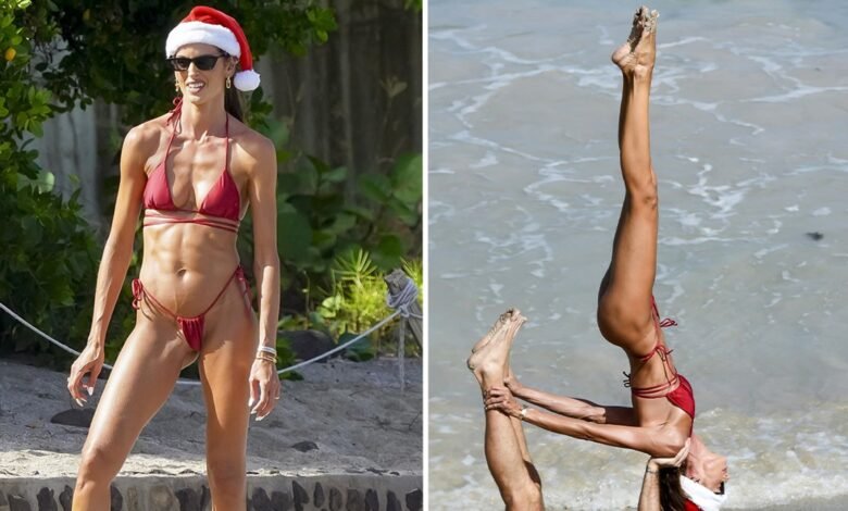 These St. Barts pics are impossible to ignore — the Brazilian model brought the holiday heat in a tiny red bikini and Santa hat, teaming up with her footballer fiancé Kevin Trapp for a jaw-dropping acrobatics session that doubled as a festive photoshoot.