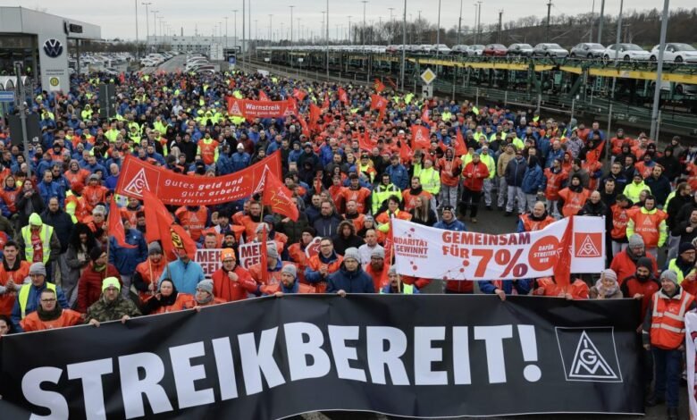 Volkswagen workers walk out on strike as German auto industry is engulfed in crisis