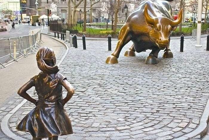 Photo above: “Fearless Girl” sculpture in New York City (photo by Steven Gomez via Wikimedia Commons).