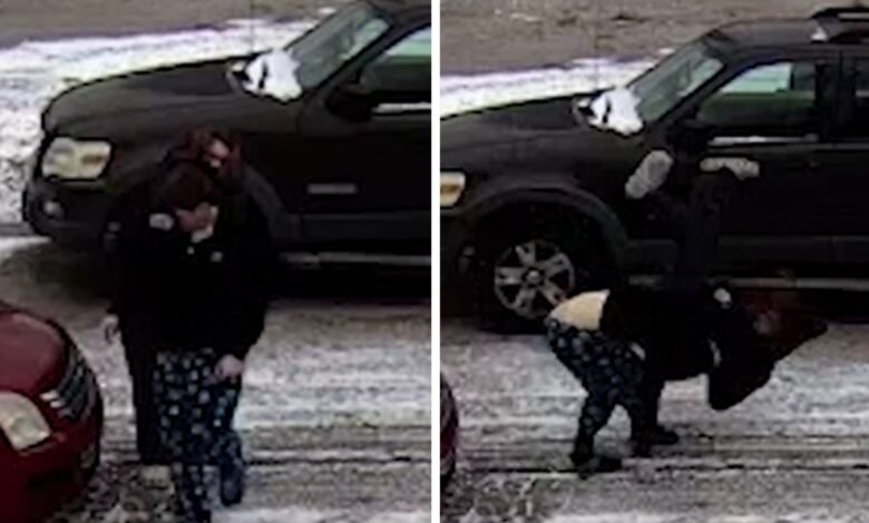 Fiery road rage turned icy fast — a woman threw a punch at a man and got viciously body-slammed onto the frozen pavement, and it was all caught on camera.