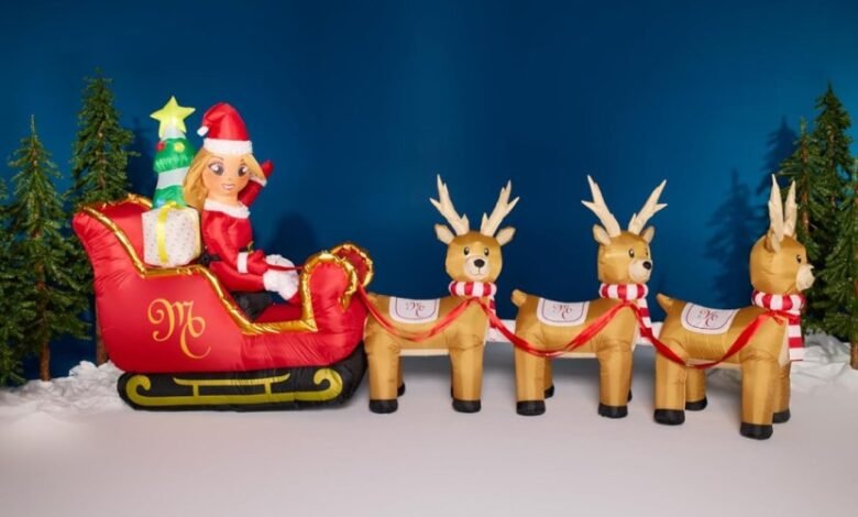 This Christmas inflatable stands 5 feet tall by just under 12 feet long and features 10 LED lights to create a glow effect. Should any passerby be confused about who is driving the sleigh, the giant MC monogram will tip them off that it’s the Queen of Christmas herself. 🎤🎶🎄