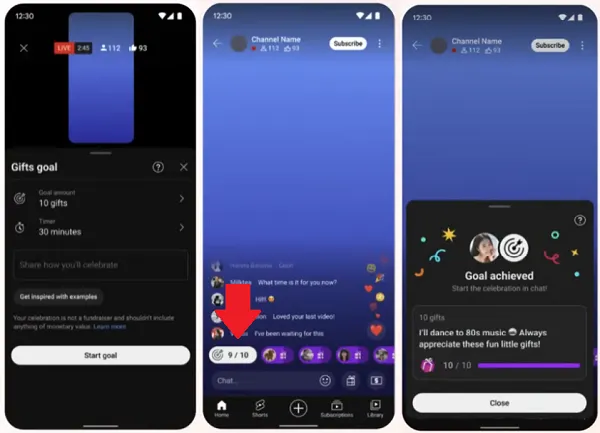 Finally, YouTube has also confirmed that it’s now experimenting with gift goals for live streams, which it announced last week.