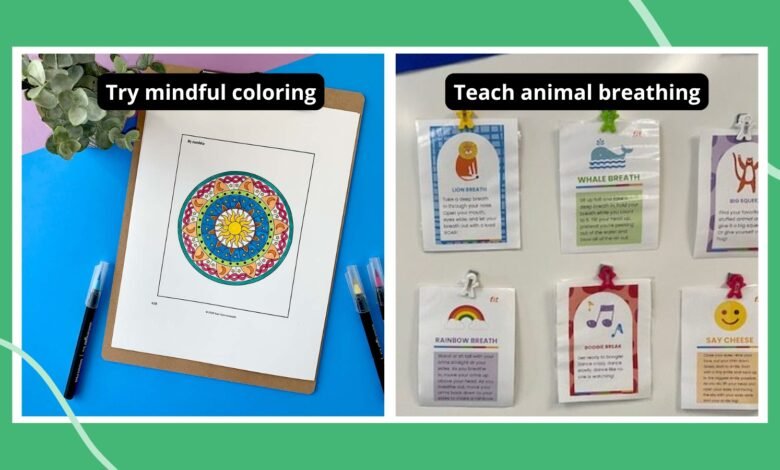 Teach students how to calm down from feeling giddy or high-energy by practicing animal breaths after an energizing activity. Then, they can breathe like a lion or whale when they’re calming down on their own.